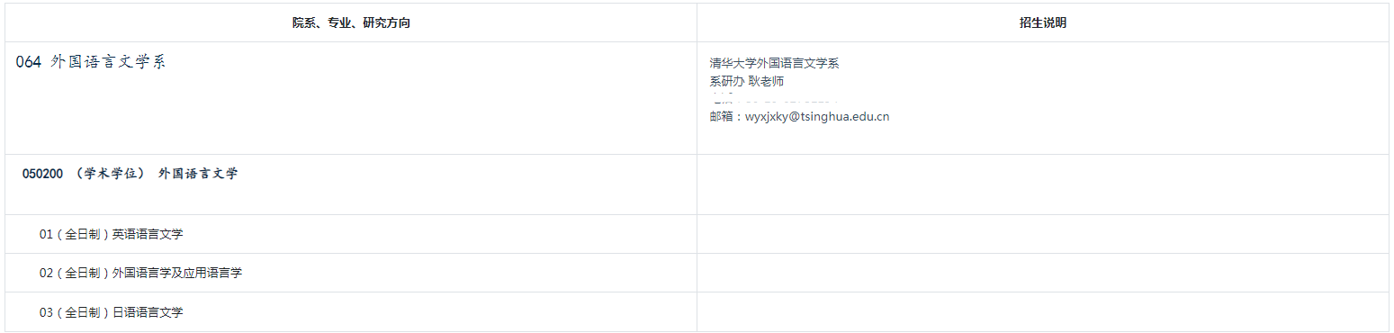 以上是关于【2026年清华外国语言文学系招收港澳台地区硕士研究生专业目录】的内容,希望能帮助准备考研清北的同学们节约时间,提高上岸的成功率。