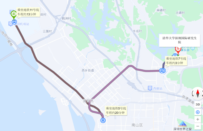飞机抵达(宝安国际机场):乘地铁11号线(往福田方向)至前海湾站,换乘5号线(往黄贝岭方向)至大学城站,从C出口出站后步行约10-15分钟。