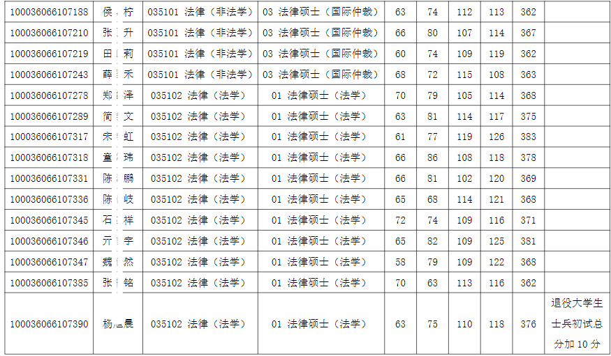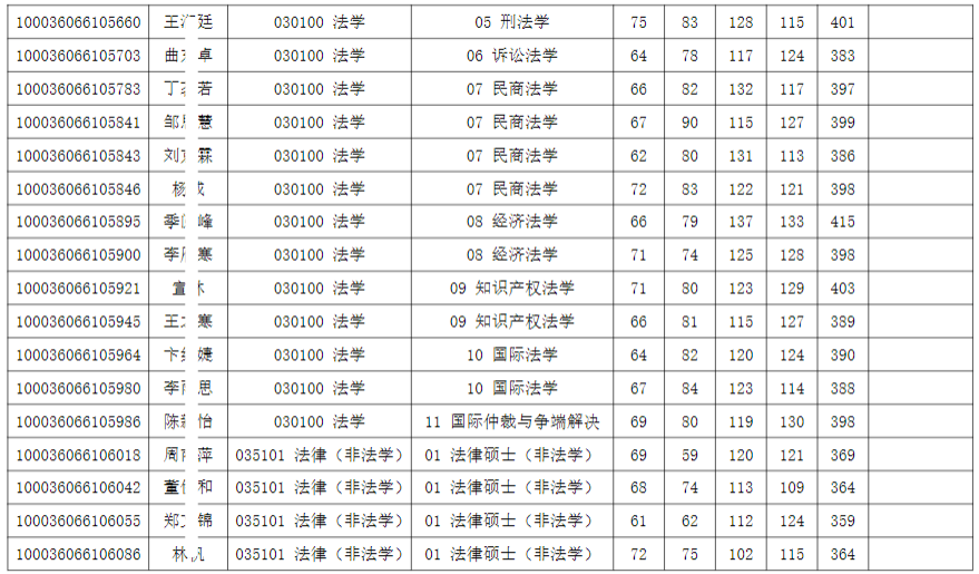 清华大学法学院2026年全国硕士研究生招生考试入围复试的名单已确定,现公布如下: