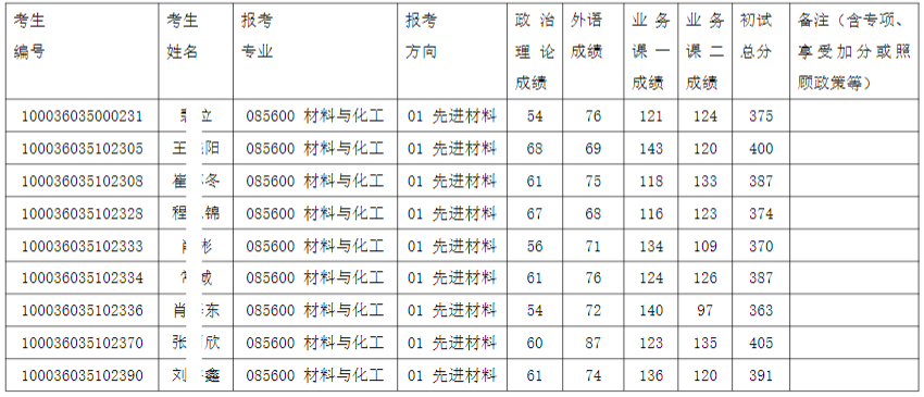 清华大学材料学院2026年全国硕士研究生招生考试材料与化工专业入围复试的名单已确定,现公布如下: