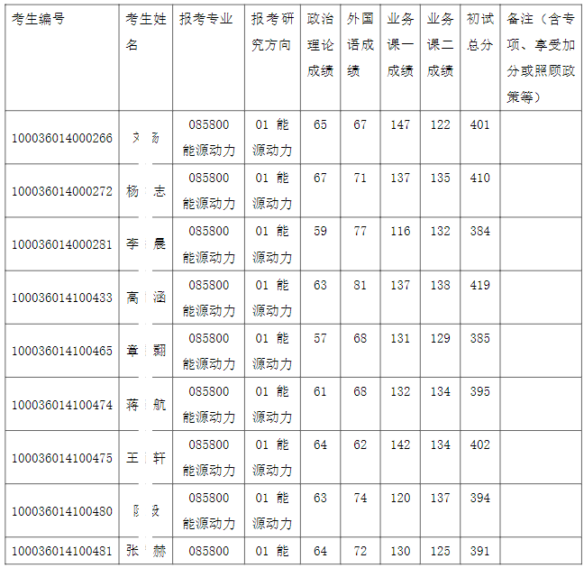 清华大学能源与动力工程系2026年全国硕士研究生招生考试能源动力专业入围复试的名单已确定,现公布如下: