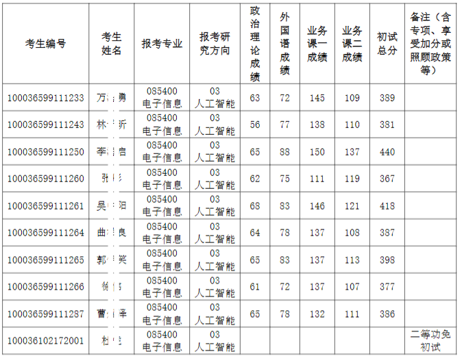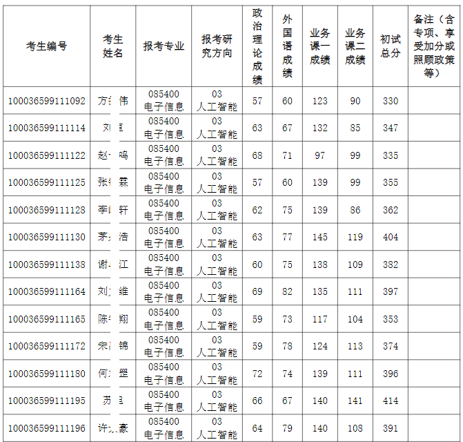 清华大学深圳国际研究生院2026年全国硕士研究生招生考试电子信息(人工智能)入围复试的名单已确定,现公布如下:
