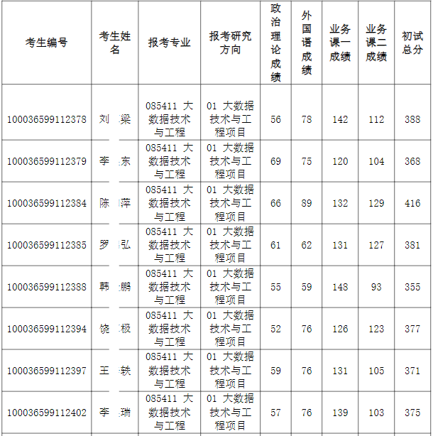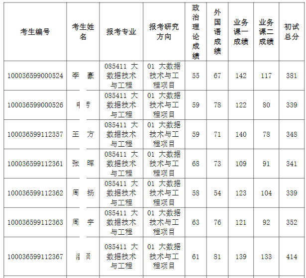 清华大学深圳国际研究生院2026年全国硕士研究生招生考试大数据技术与工程项目入围复试的名单已确定,现公布如下: