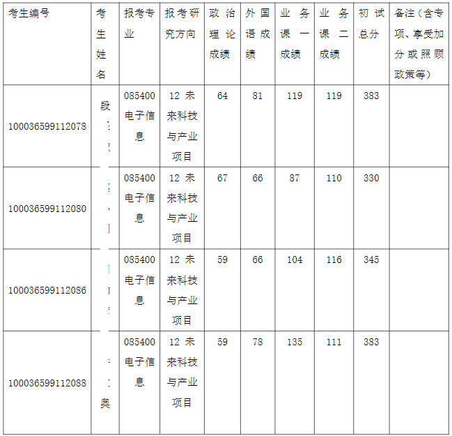 清华大学深圳国际研究生院2026年全国硕士研究生招生考试电子信息(未来科技与产业项目)入围复试的名单已确定,现公布如下: