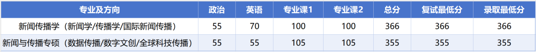 从分数线来看,新闻传播学学硕对外语要求较高(70分),反映出国际新闻传播方向对英语能力的重视。专硕对专业课要求更高(105分),注重专业基础的扎实程度。值得注意的是,两个专业均有压线考生成功录取,复试最低分与录取最低分持平,说明只要进入复试环节,每一位考生都站在同一起跑线上,复试表现才是决定最终结果的关键。