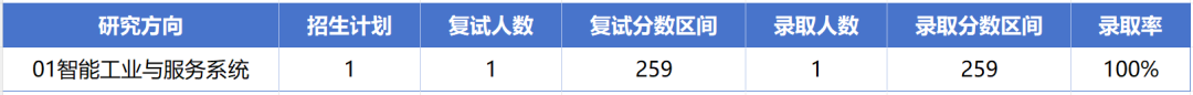 仅1人进入复试,等额复试,录取率100%