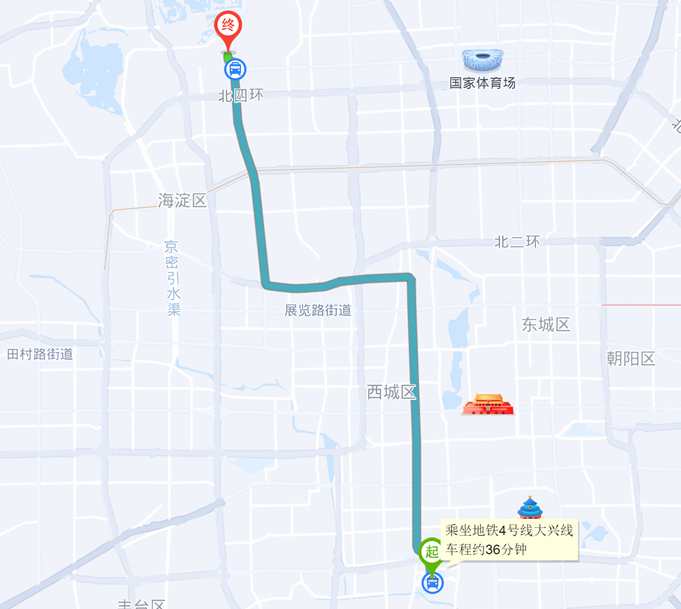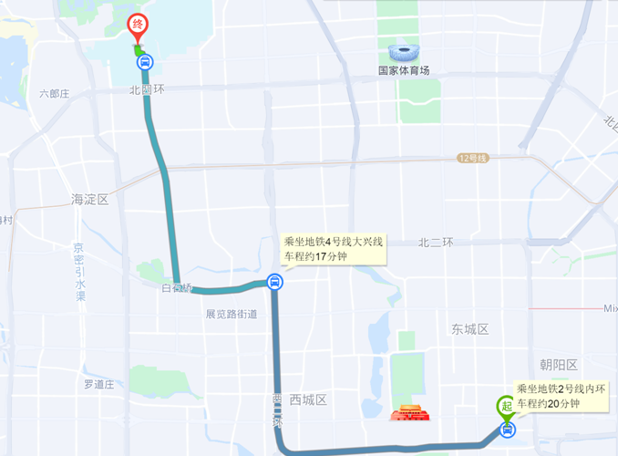 北京站:乘坐地铁2号线至西直门站,换乘4号线至北京大学东门站。