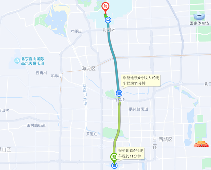 北京西站:乘坐地铁9号线至国家图书馆站,换乘4号线至北京大学东门站。