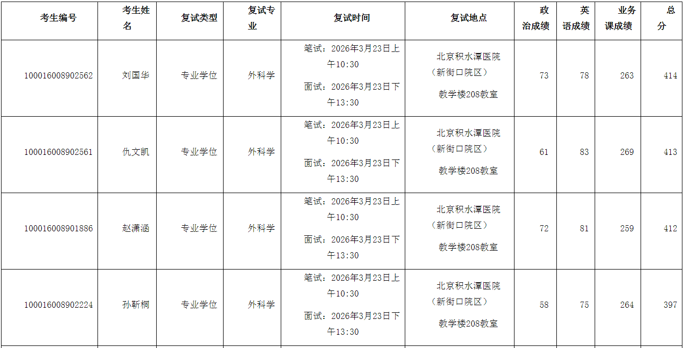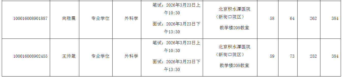 3月23日 上午10:00 | 北京积水潭医院新街口院区 教学楼208教室 | 3月23日 上午10:30-11:30 | 笔试 | 外科学考生 |