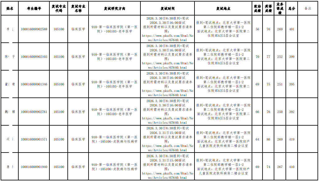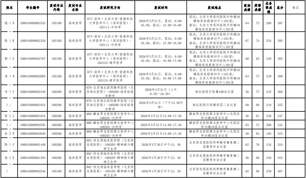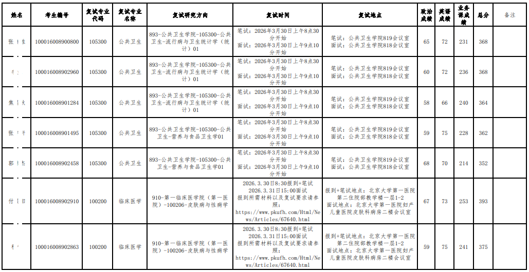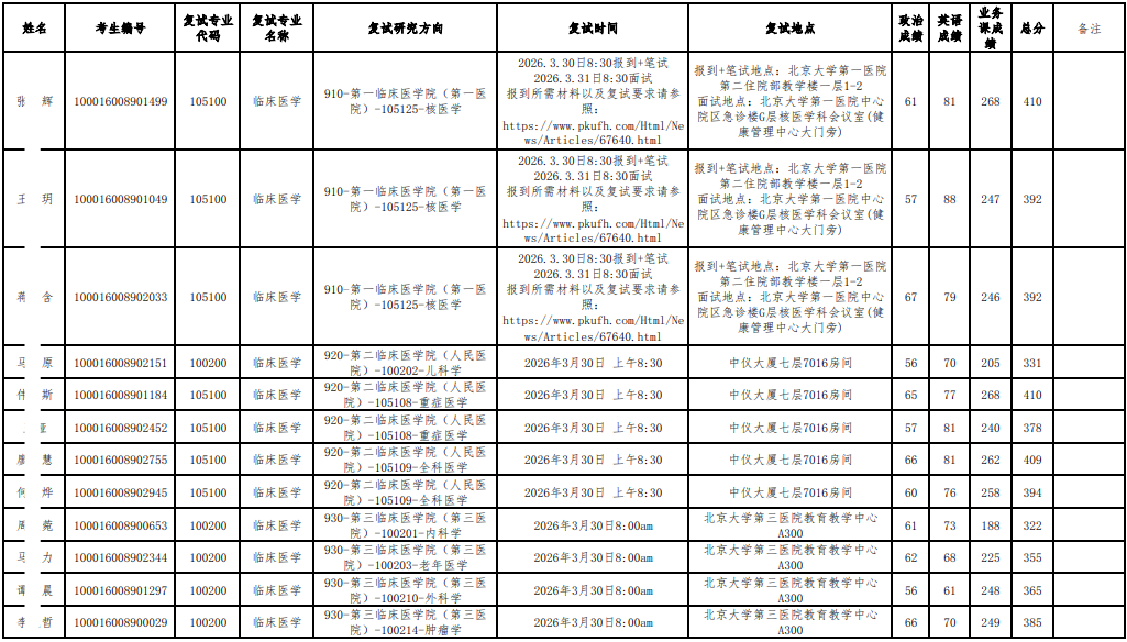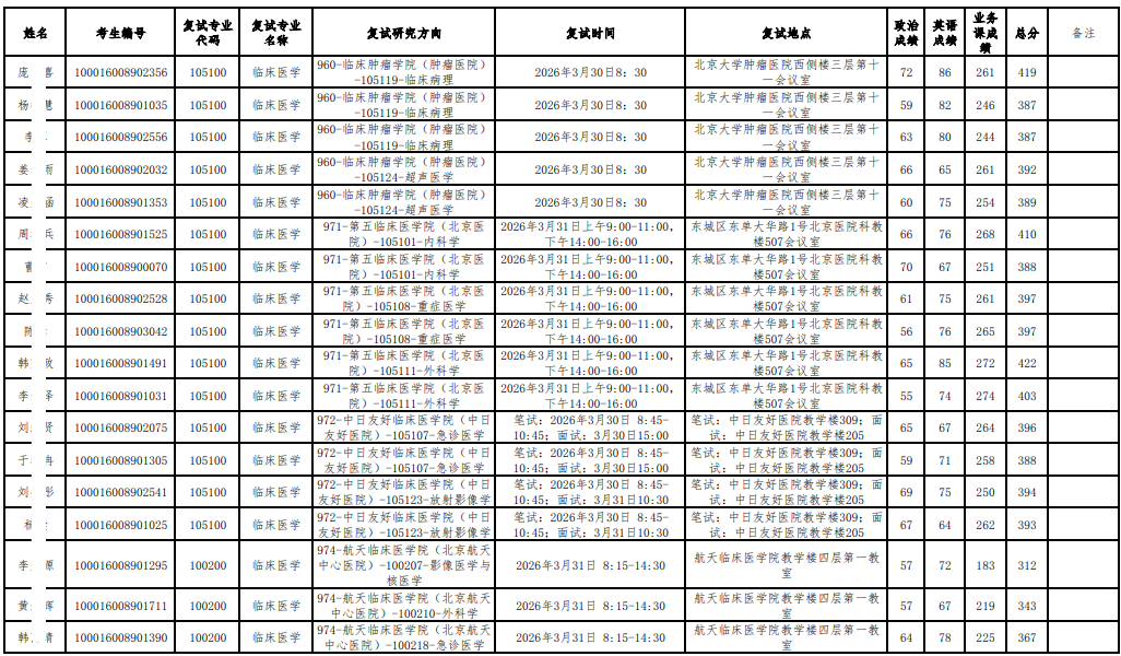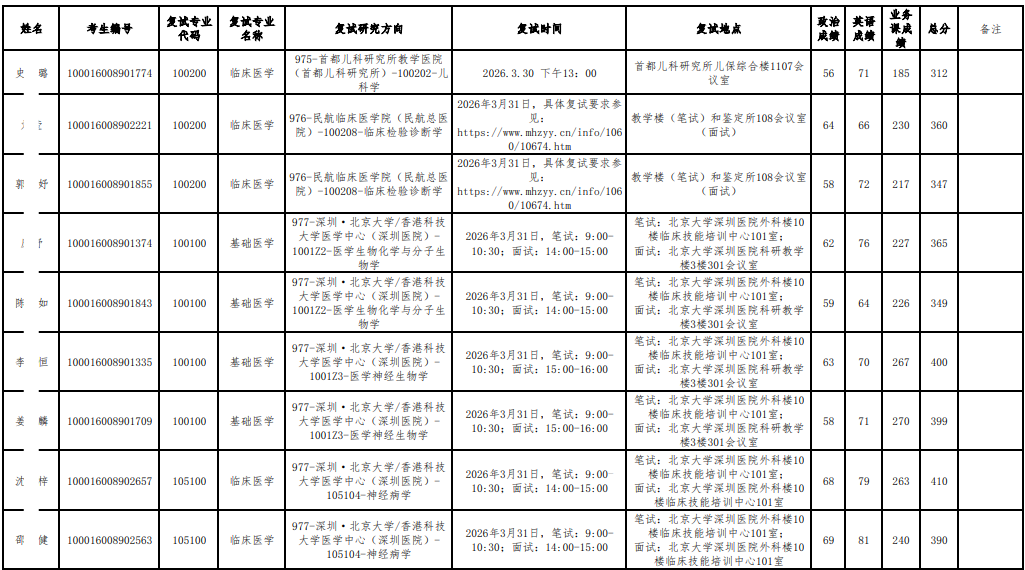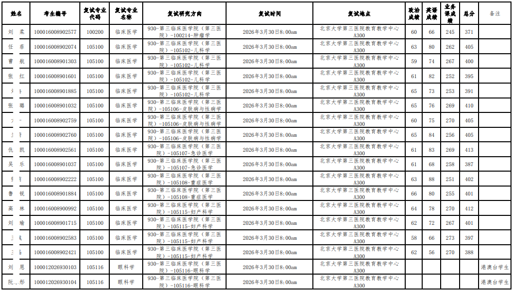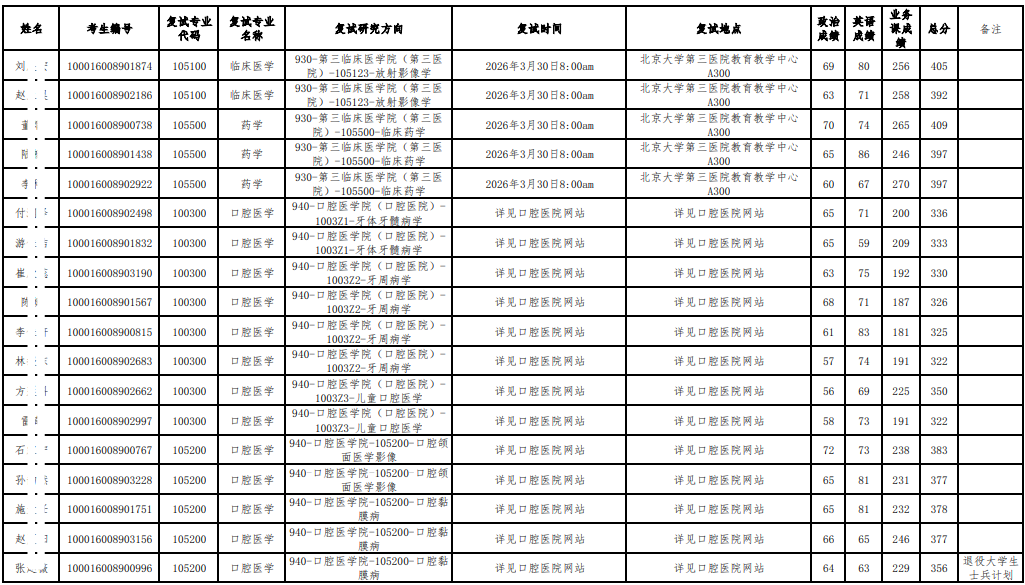 以上是关于【2026年北大医学部硕士研究生招生研究方向调整复试名单公示】的内容,希望能帮助准备考研清北的同学们节约时间,提高上岸的成功率。