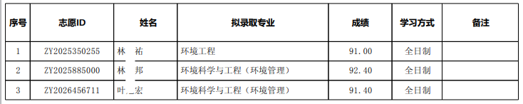 2026年环境科学与工程学院硕士研究生招生拟录取名单,公示期从2026年3月31日起7日,如有异议,请在公示期内实名提出。