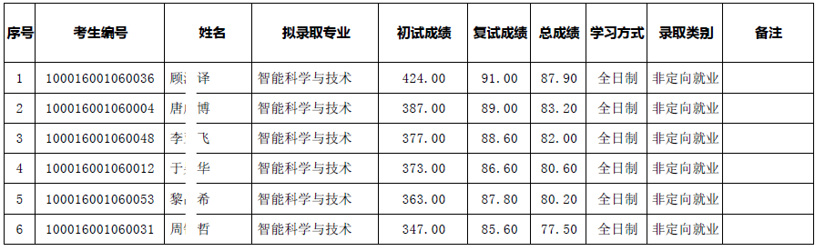 2026年北京大学智能学院硕士统考考生拟录取名单现在开始公示。