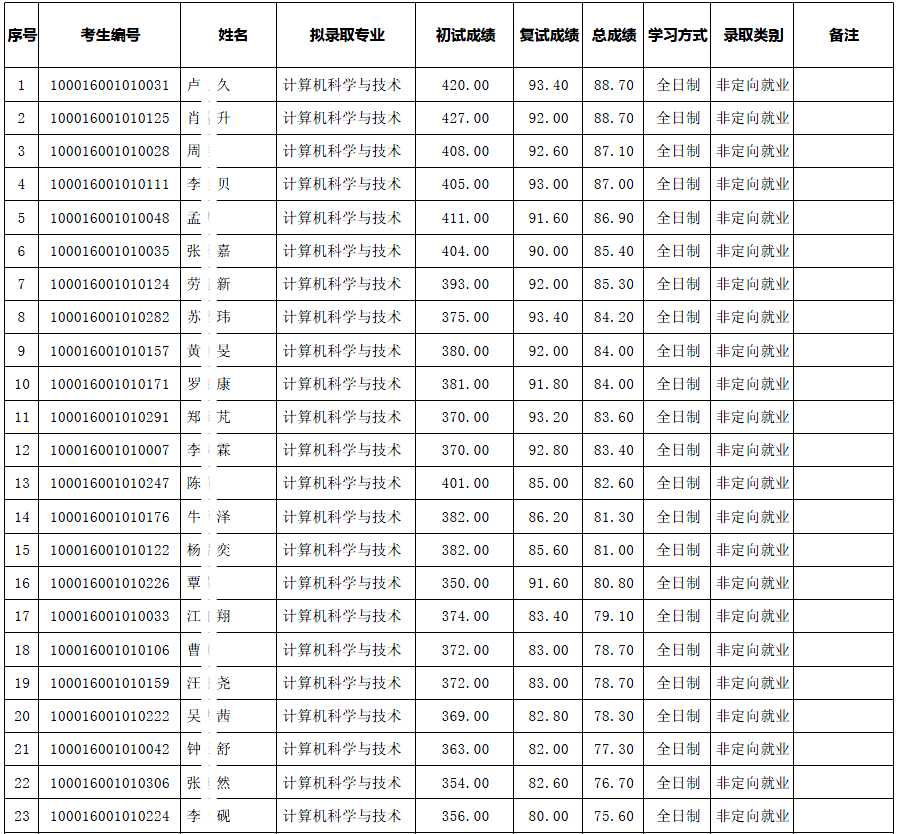 2026年北京大学计算机学院硕士统考研究生招生拟录取名单,自2026年4月2日起公示7日。如有异议请在公示期内实名联系。