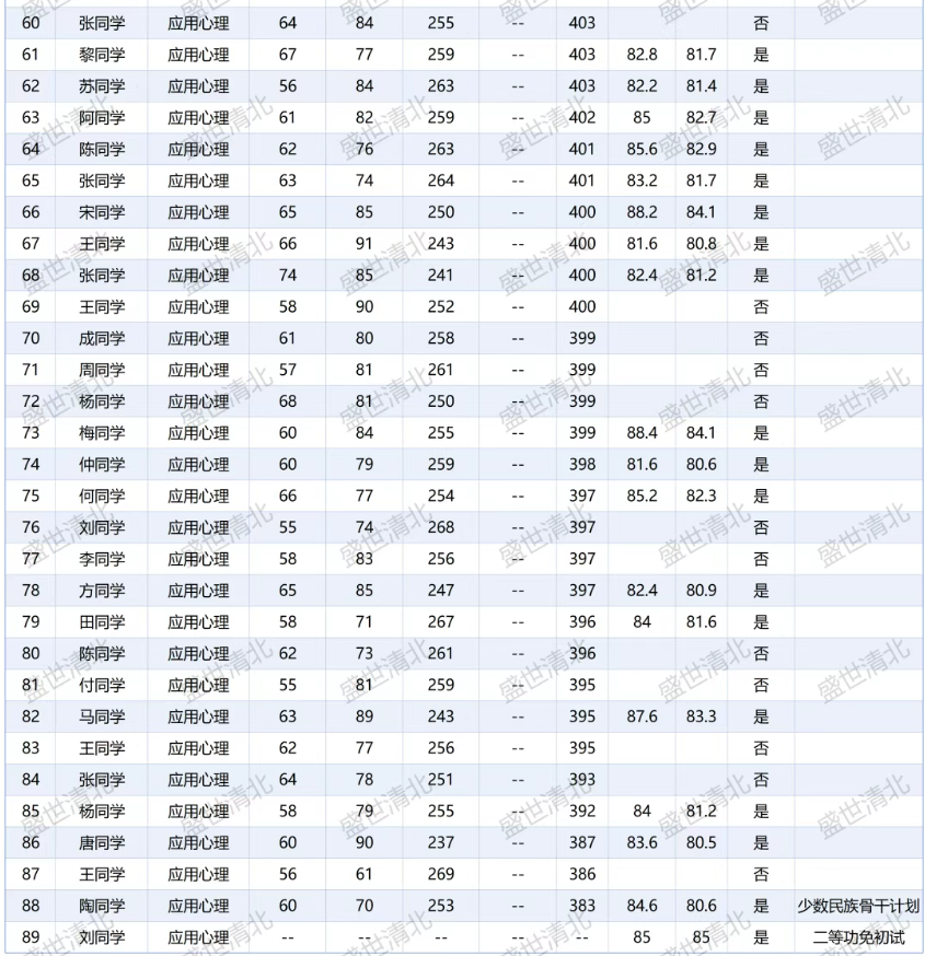 从实际入围情况来看,应用心理专业入围复试89人(含二等功免初试),入围最低分约为383分。