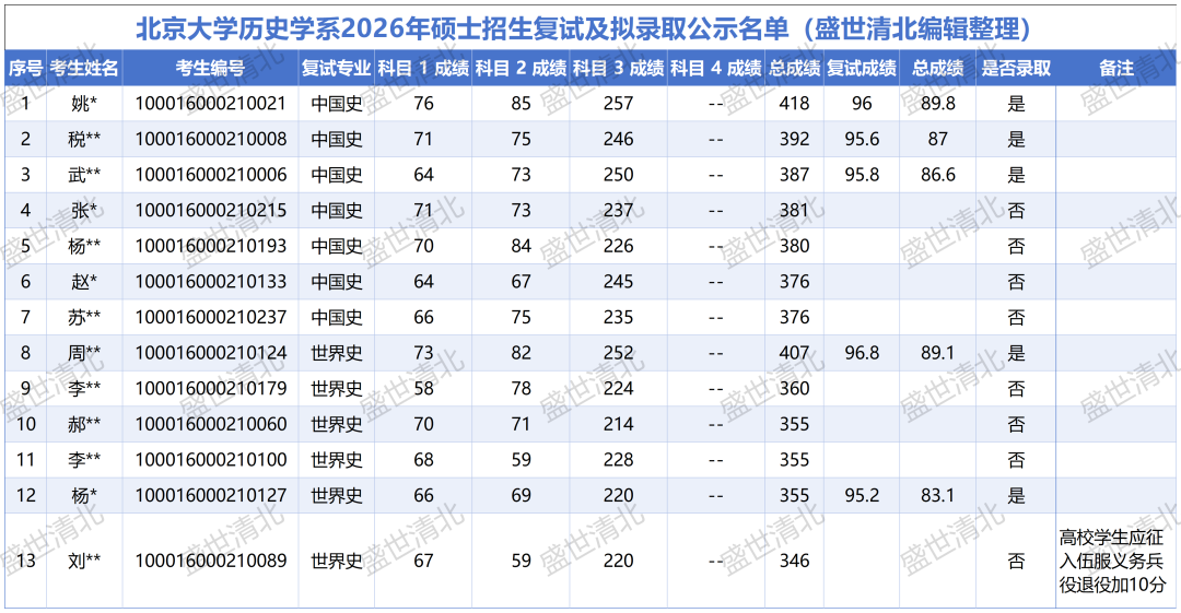 北京大学历史学系2026年硕士招生拟录取名单近日公布。在世界史专业的激烈竞争中,初试355分压线入围、复试95.2分成功逆袭的经典案例,引发广泛关注。