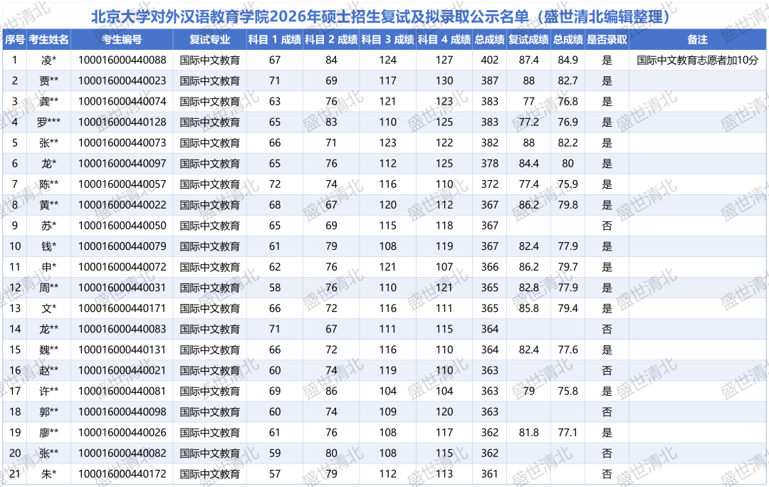 注:以上数据基于北京大学对外汉语教育学院官方公布名单整理,由盛世清北团队进行简要点评,如有疏漏之处,敬请指出,仅供参考。