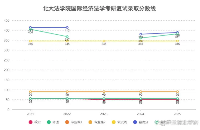 在单科要求方面,政治科目在2021-2023年均要求55分,2024年后调整为50分;外语科目则始终保持在55分的水平;两门专业课(专业课1与专业课2)的分数线连续五年稳定在90分。最为关键的是,该专业的复试总分线自2021年至2025年,连续五年均划定在345分。